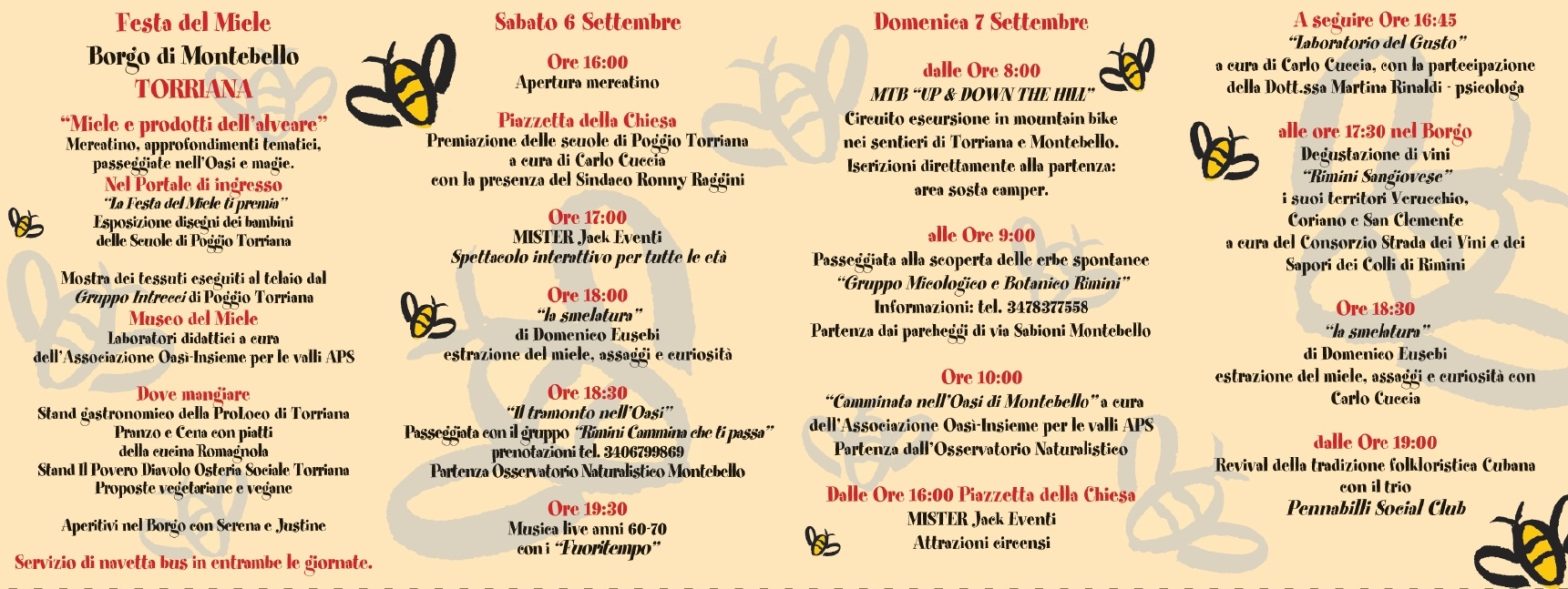 Sabato 6 e domenica 7 Settembre 2025 il Borgo di Montebello (Poggio Torriana – RN) si anima di dolcezza per la Festa del Miele! Non mancate!! Tra passeggiate, degustazioni, approfondimenti, animazione e attività per grandi … e piccini … vi aspettiamo per vivere un weekend ricco di cose belle e buone … in un’atmosfera magica…!… Continue reading Festa del Miele a Montebello